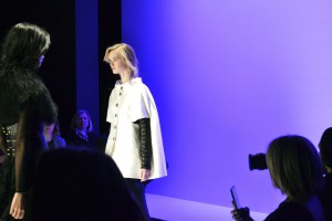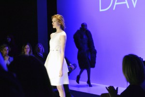 The empowering Joan of Arc, I don’t know if i can describe this line in better terms. I had high hopes for David Dixon’s line this year and he has exceeded every expectation. I had a mix of emotions throughout his show, i felt empowerment and strength, yet sensuality and sex. His contrast of black and white and use of materials such as large black furs, sleek leather corsets, and clean white cocktail dresses that would perfect any spring outing, is exactly what every self respecting, empowered woman needs in their closet to be in touch with their inner Joan of Arc. -Shannon Liverpool